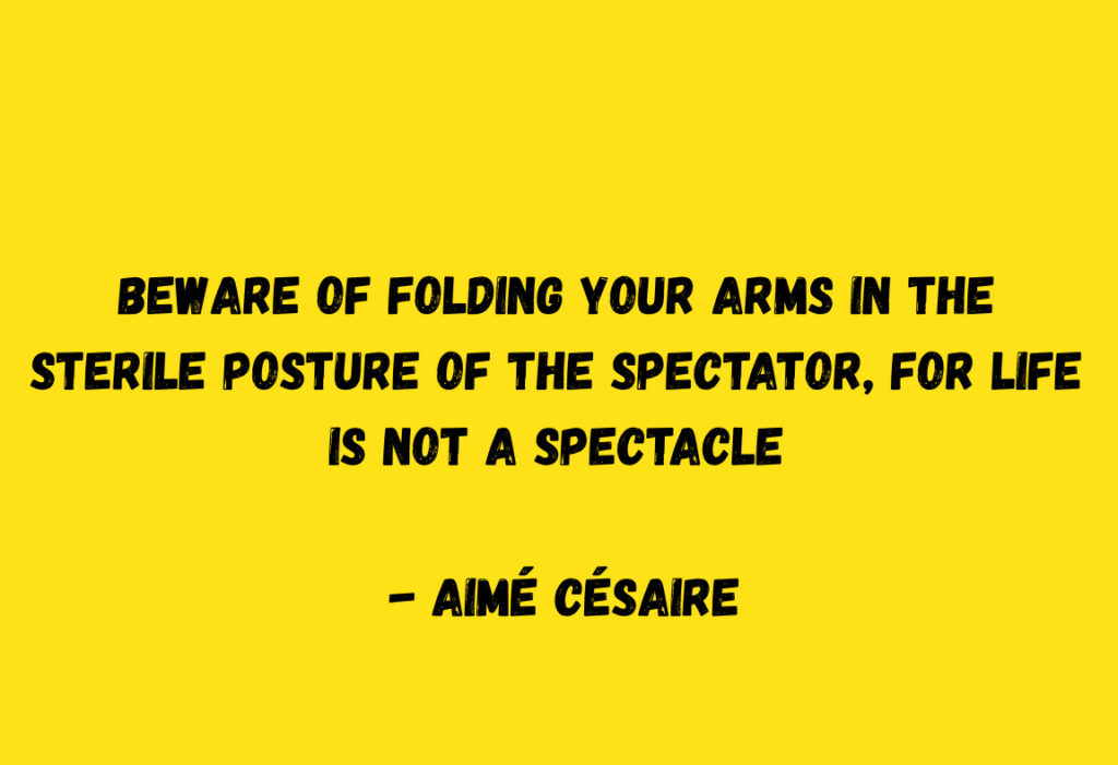Don’t be a spectatorBy Amina Seni / 08/11/2025 From Notebook of a Return to the Native Land by Aimé Césaire